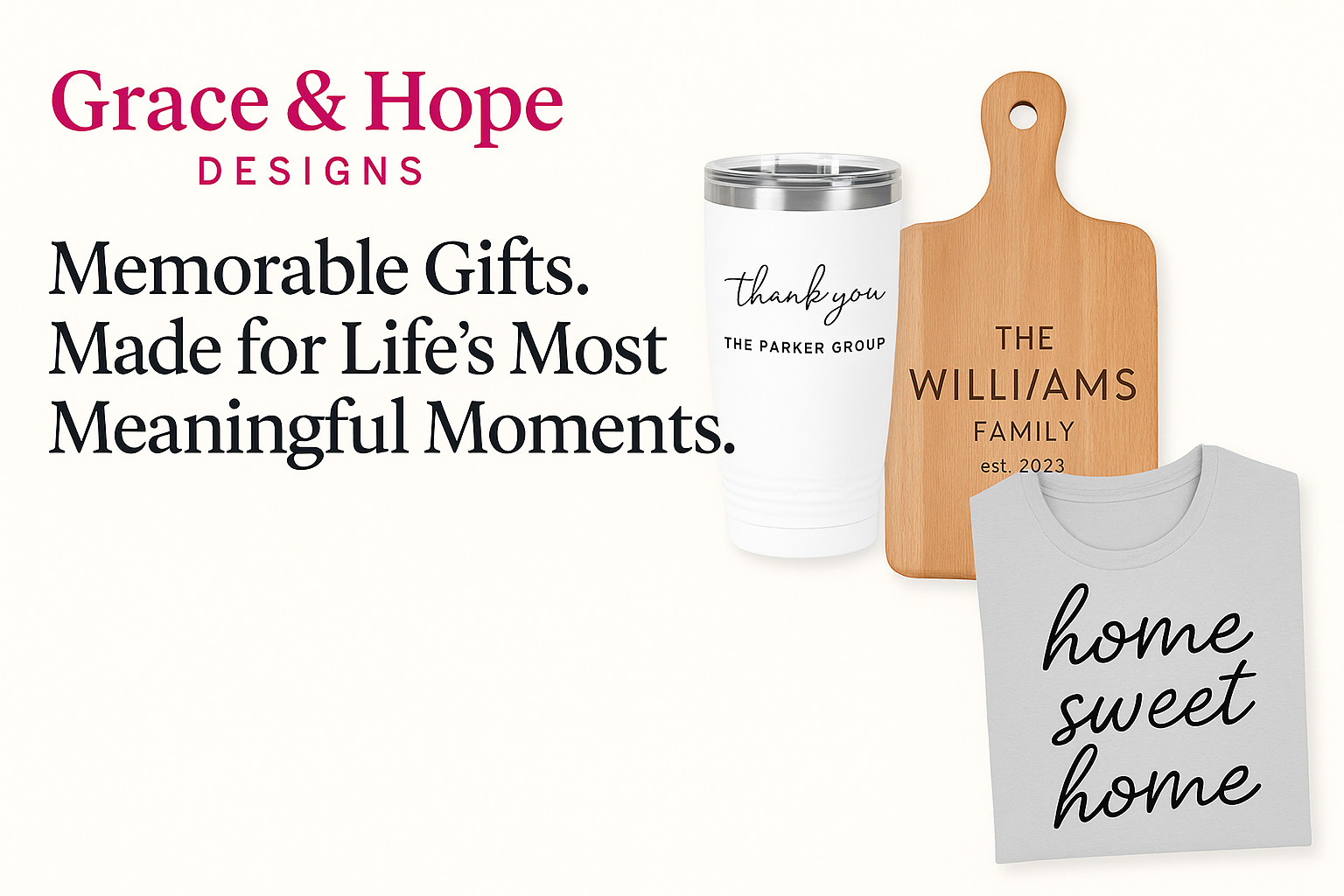 My clients always comment on how unique and personal their gifts are. Grace & Hope Designs nails it every time with beautiful, branded pieces and incredible attention to detail.”